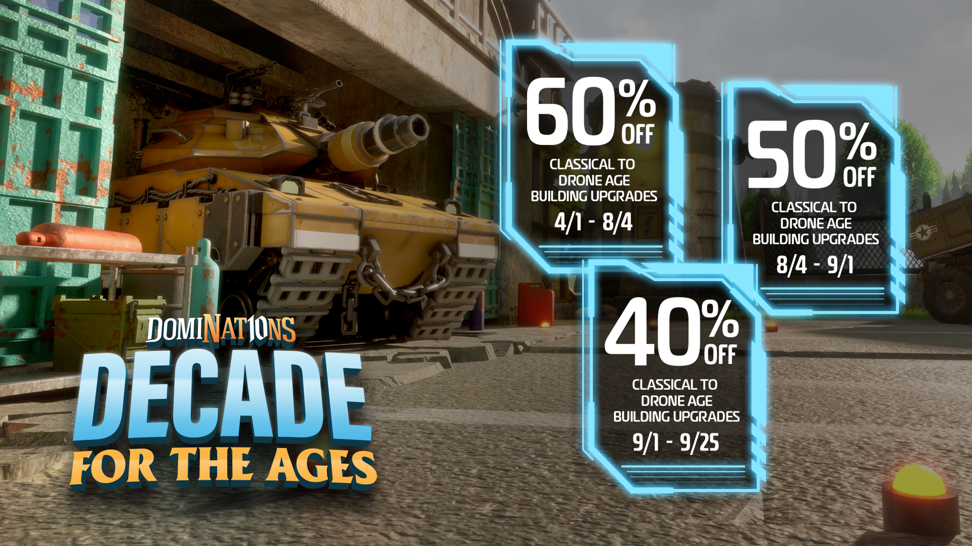 This 10th Anniversary celebration will kick off with our Decade for the Ages Event, a twist on our usual Summer for the Ages this year. This Decade for the Ages will have an extended run time for the first leg of discounts starting 4/1, with 60% off all upgrades from Classical to Drone Age. This 60% discount will last until 8/4, when the 50% discount will start. Finally, we round out Decade for the Ages with a 40% discount from 9/1 until the event ends on 9/29.