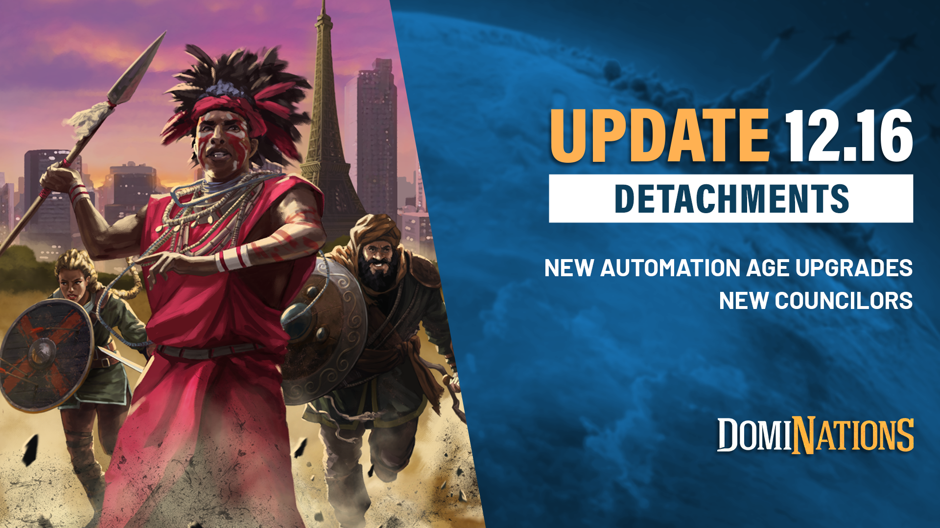 The future of warfare in DomiNations is ready for deployment! We’re introducing a brand new way to control your army in battle, new Automation Age upgrades, and two new attack-oriented Councilors. Read on to see what you can expect arriving in our update for next week!