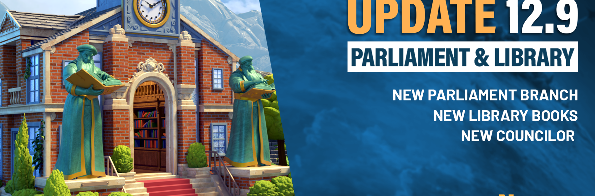 DomiNations update 12.9 is on the way! This larger update will give Alliances a new Parliament Branch to explore. Our players in Drone Age and beyond can look forward to new books to research in the Library. We also give you an early glimpse at two upcoming Legendary Artifacts, and highlight the next Councilor for your Council Chambers!