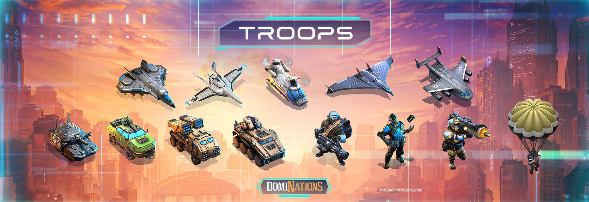 Heavy Infantry - Level 15 Ranged Infantry - Level 14 Raider - Level 13 Wall Breacher - Level 11 Commando - Level 13 Ranged Siege - Level 10 Supply Cart - Level 10 Mortar Infantry - Level 9 Assault Vehicle - Level 4 Machine Gun Infantry - Level 13 Armored Car - Level 11 APC - Level 9 MRL - Level 7 Paratrooper - Level 7 |