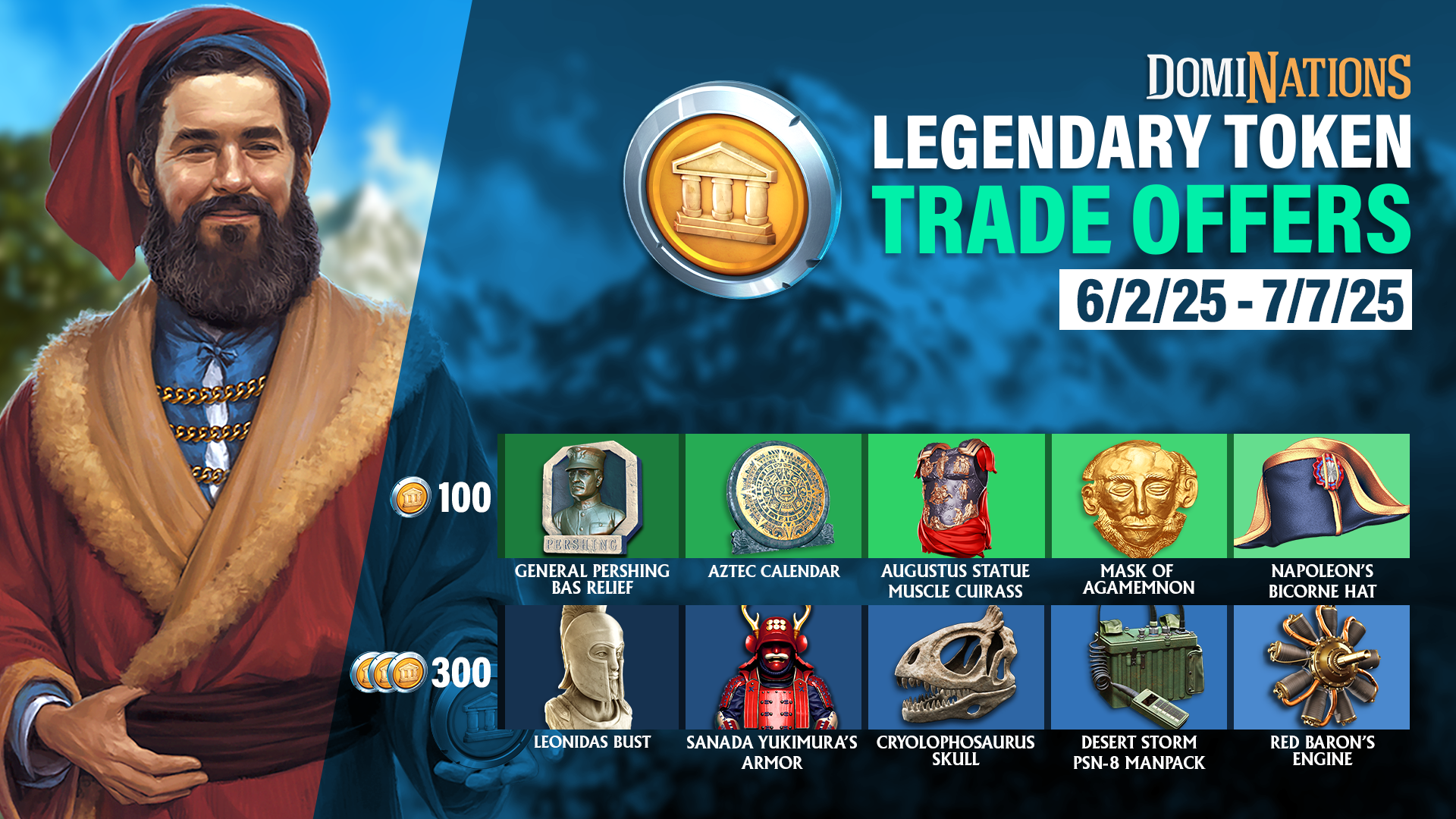 Each month, Marco Polo offers several Legendary Artifacts, which can be acquired with Legendary Tokens.