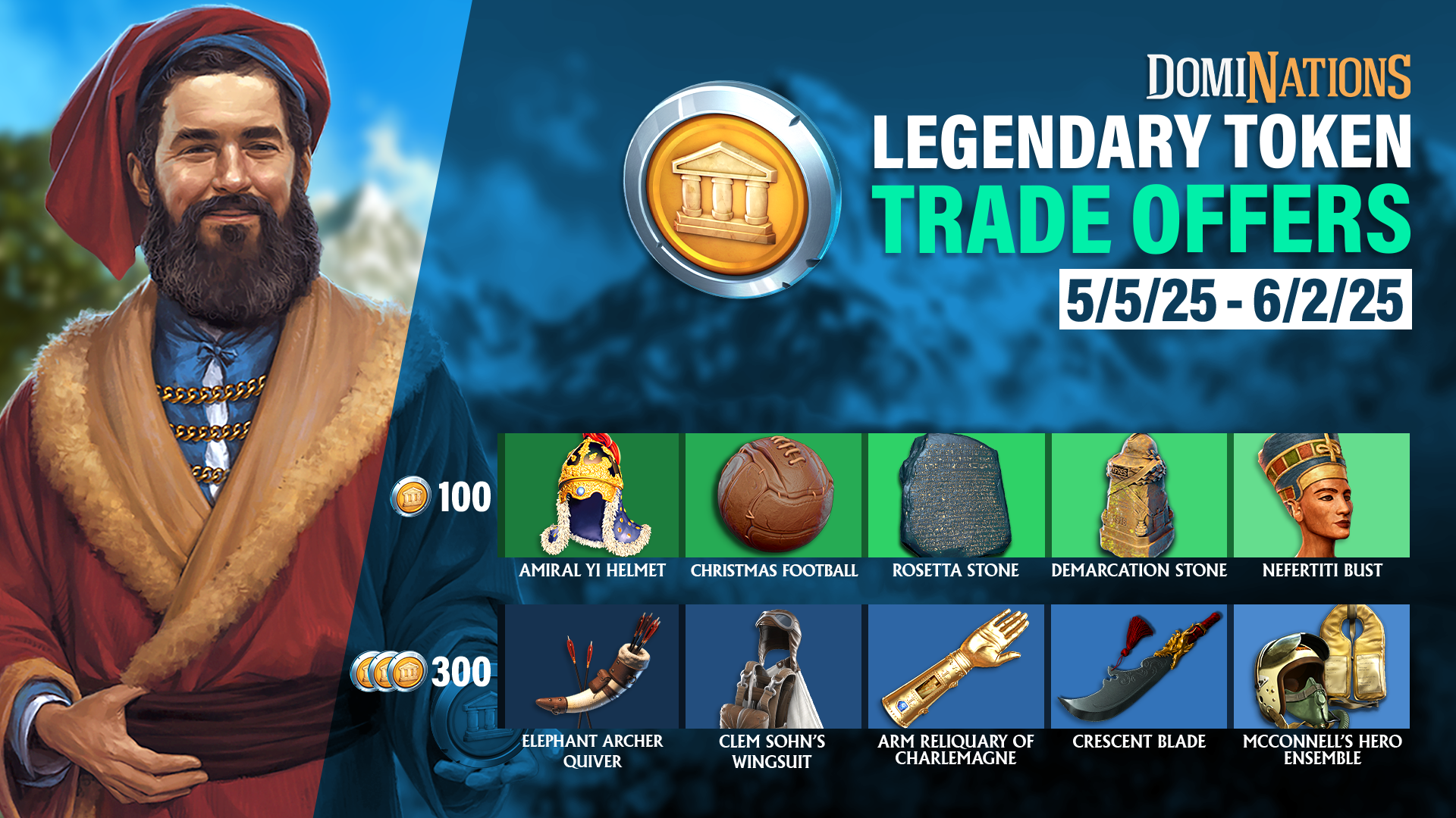 Each month, Marco Polo offers several Legendary Artifacts, which can be acquired with Legendary Tokens.