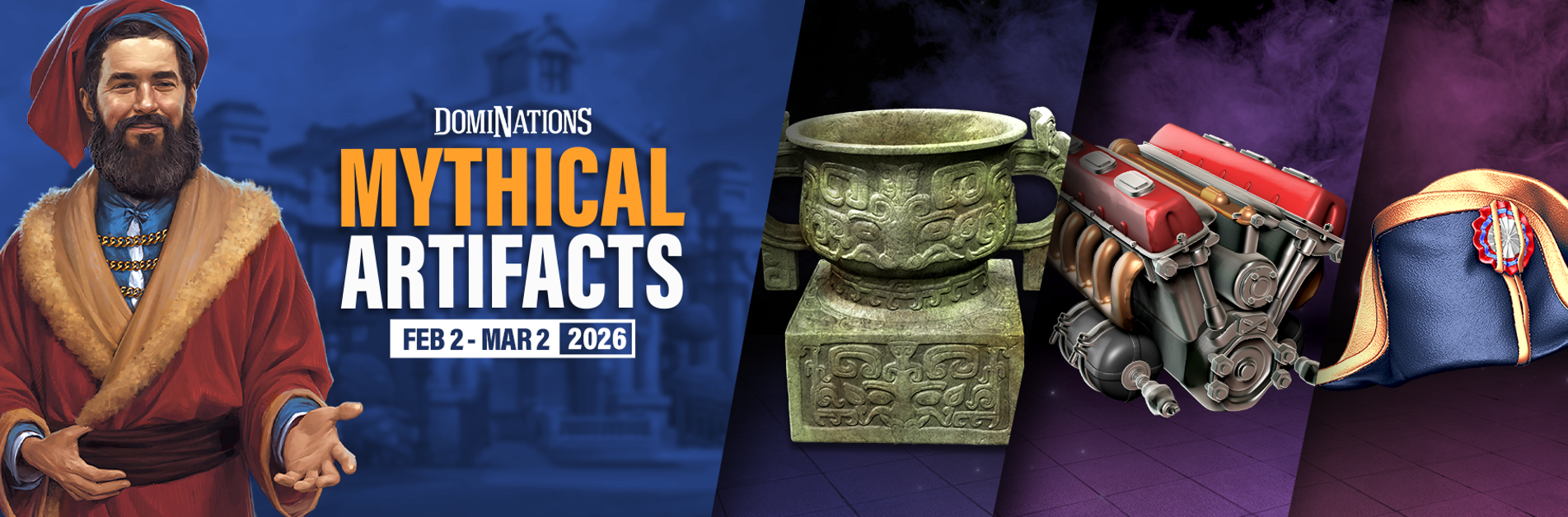 Marco brings three Mythical Artifacts for you to collect with your Legendary Tokens! Li Vessel, T-34 Tank Engine, and Napoleon's Bicorne Hat will be available for 1000 Legendary Tokens from 2/2 to 3/2.