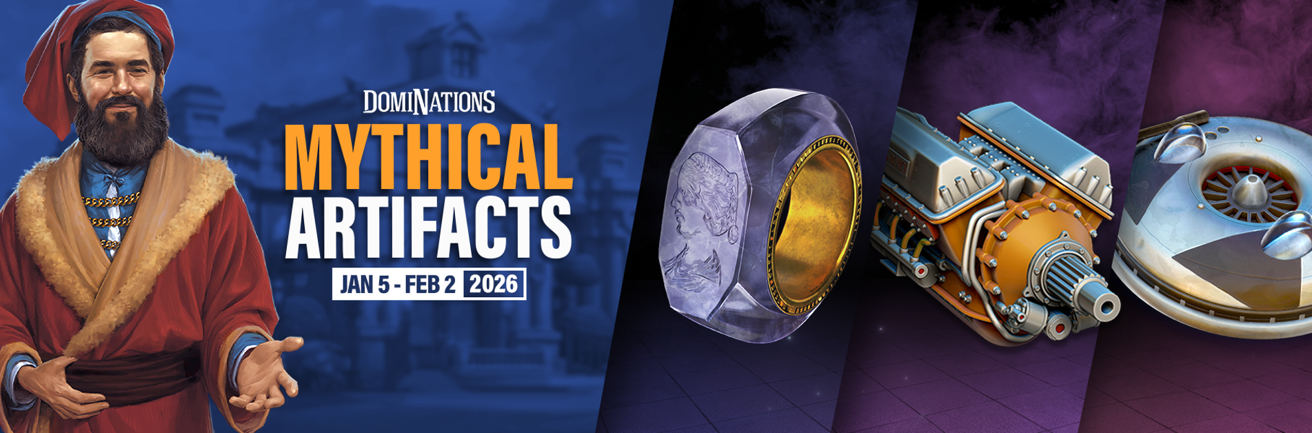Marco brings three Mythical Artifacts for you to collect with your Legendary Tokens! Mythical Caligula's Ring, Supermarine Spitfire Engine, and the Vz-9 Avrocar will be available for 1000 Legendary Tokens from 1/5 to 2/2.