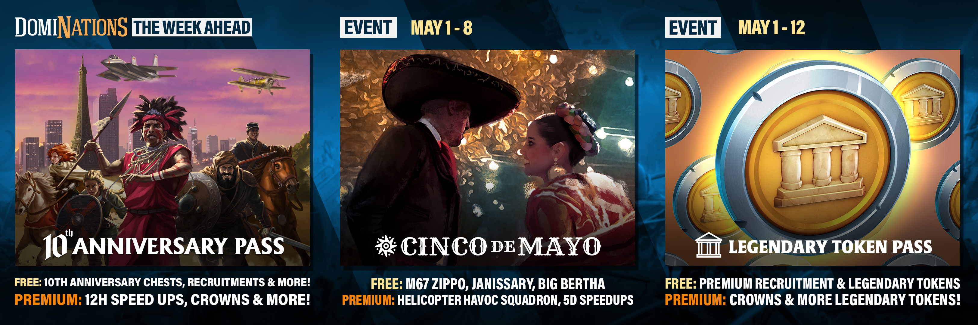 Our Cinco De Mayo Event Pass will include Janissary, Big Bertha, and Whippet Tank Troop Tactics for Free! Premium Pass holders can expect to find Tupolev Tu-160, Helicopter Havoc Squadron, and more!