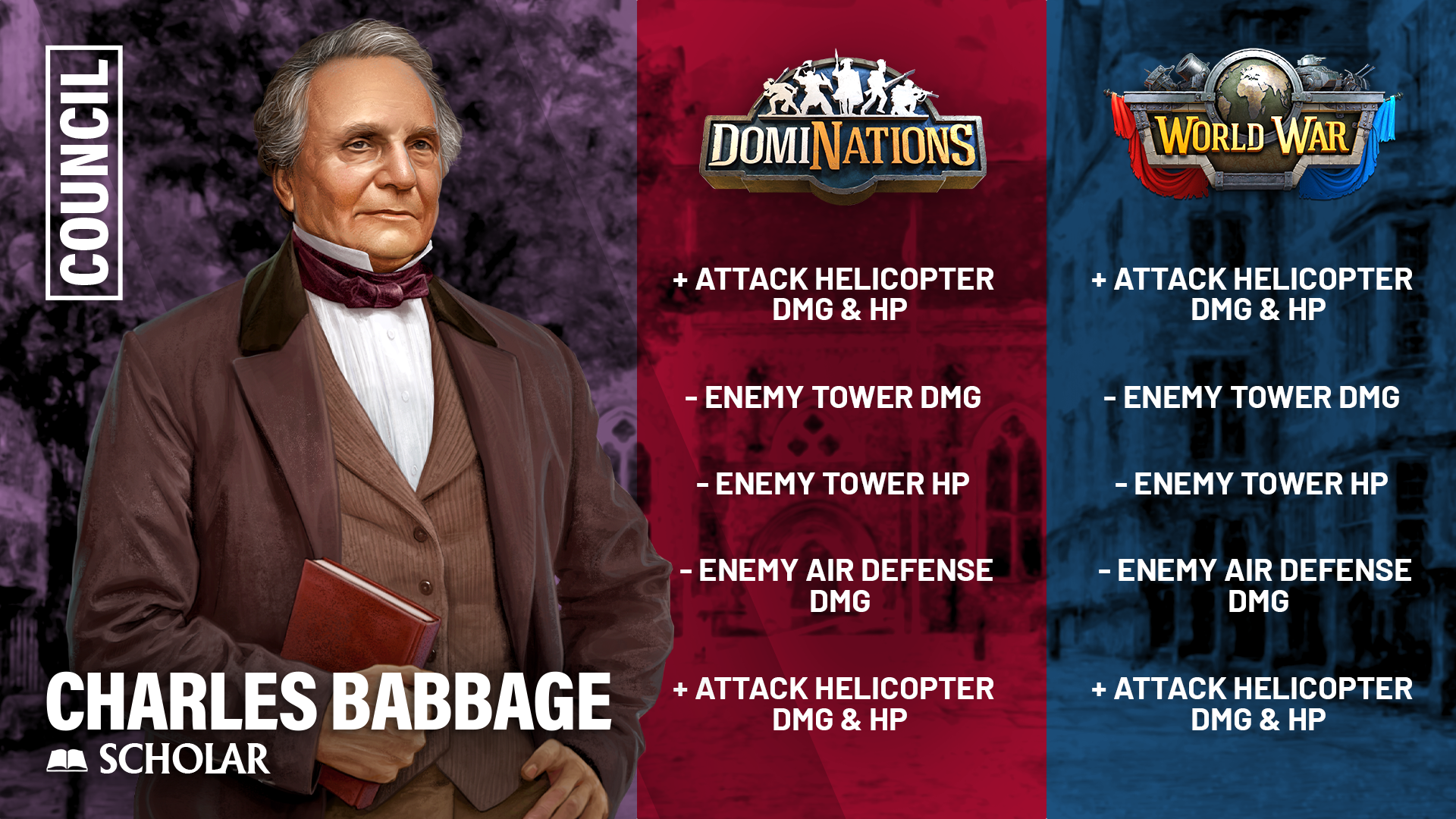 Starting this week, Charles Babbage will be available for your Council Chambers. This latest Councilor will be available in a guaranteed Step-Up like previous releases. Get to the 2nd step to obtain the Epic War and Primary Hall versions of Charles Babbage, and complete the sale for the Legendary versions guaranteed! This step-up sale will be available until 6/9/25.