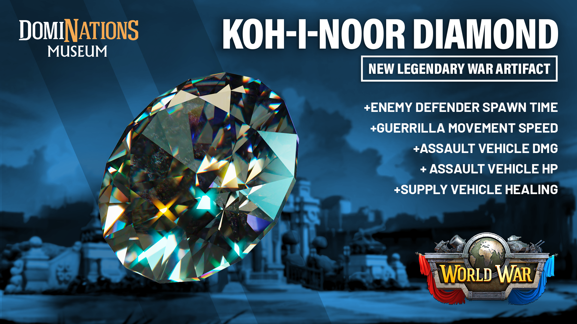 Our Atomic Event offers free Troop Tactics like the P-40 Warhawk, M67 Zippo, Odessa Tank, and more! But the Premium tier introduces a brand new Legendary Artifact, the Koh-i-Noor Diamond!
