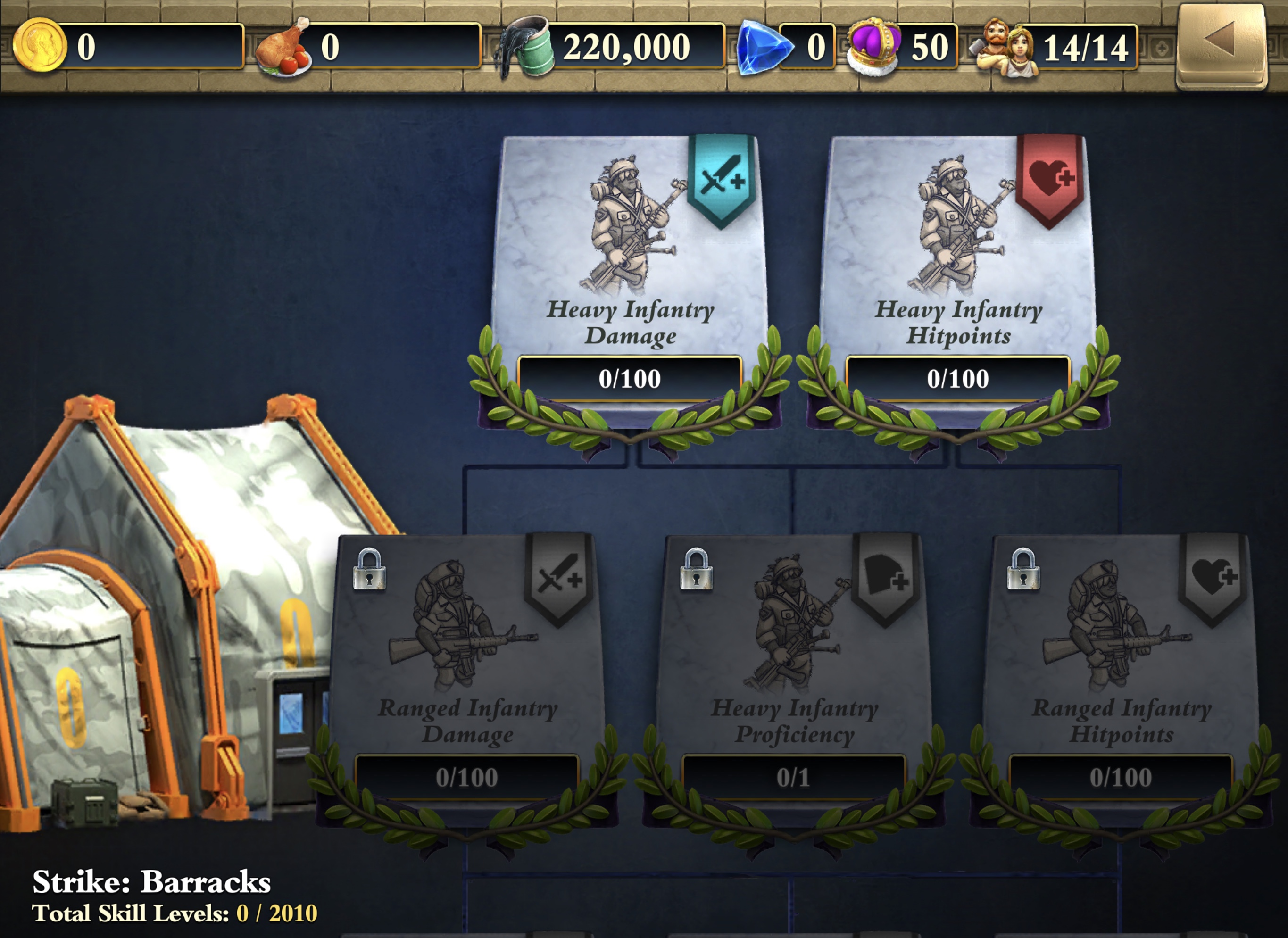Barracks, for example, starts out with Heavy Infantry stat boosts, but then branches out into Ranged Infantry, eventually reaching down to Mortar Infantry and Attack Helicopters.