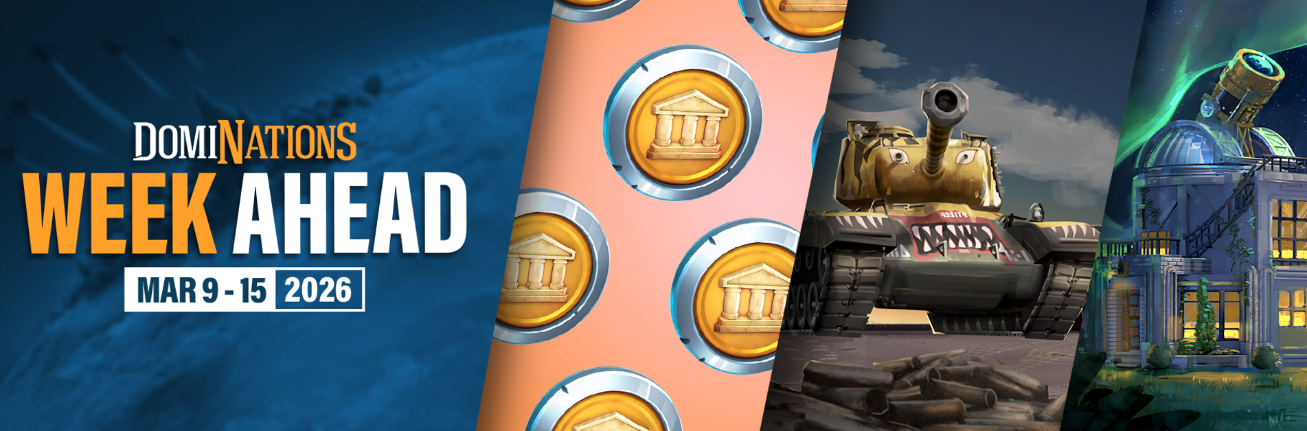 This week, the Historical Harvest continues offering discounted University Research. There’s also the Tank Rush Event Pass and a Guaranteed Mythical Artifact step-up available this week. Find all that and more in the Week Ahead!